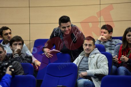 Noul team-manager al „câinilor” a luat loc în sală la ora 10:00, alături de fostul coechipier Bogdan Pătrașcu, și-a scos bloc-notes-ul și pixul și a început să-și ia notițe. La început, a părut mai timid, dar odată cu trecerea timpului, precum un tânăr debutant pe teren, „Danciu” a prins curaj. A intrat în dialog cu profesorul și chiar a împărtășit din experiența sa.