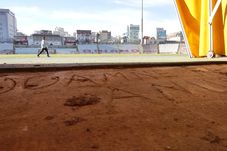 Parcul Sportiv Dinamo prezintă, încă din rotonda de la șosea, un delir, acolo unde un schelet de beton gri zace lângă bronzul statuii uriașului Patzaichin.