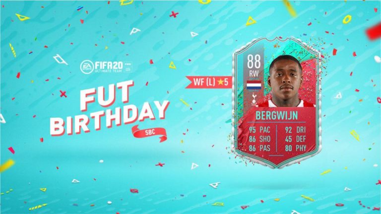 Odată cu evenimentul FUT Birthday, EA SPORTS a lansat zilnic noi provocări Squad Building Challenge, pachete promoționale și carduri noi pentru cei mai buni fotbaliști la momentul actual. Steven Bergwijn a fost cumpărat de către Tottenham Spurs pentru suma de 35,000,000$. Jucătorul în vârstă de 22 de ani joaca pe poziția de atacant stânga și este unul dintre cei mai rapizi jucători din Premier League.
