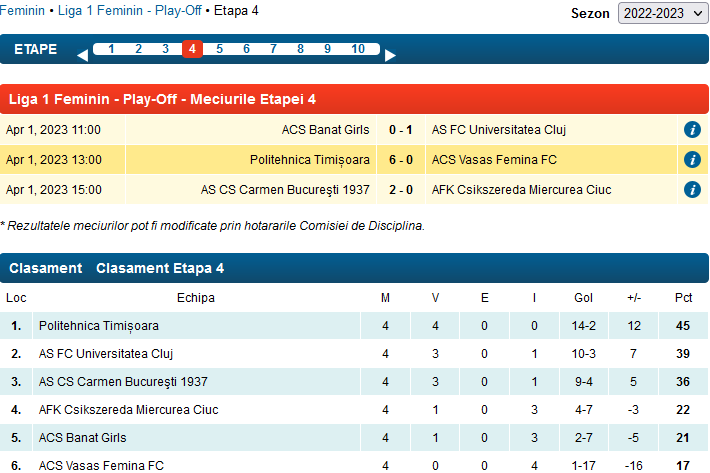 O ramură la care Politehnica Timișoara stă bine este fotbalul feminin. „Studentele” din Banat ocupă primul loc în clasament, în play-off, la șase puncte distanță de Olimpia „U” Cluj, campioana ultimelor 11 ediții.