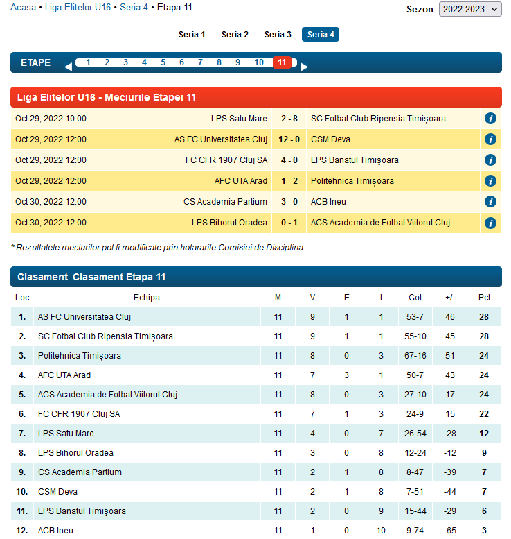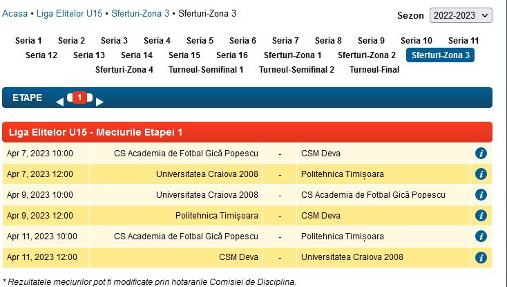 Liga Elitelor U15, Sferturi de finală, Zona 3. Politehnica Timișoara, câștigătoarea seriei 11, va întâlni CSM Deva.