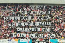 Prezență importantă pentru dinamoviști, 31.123 fanii fiind anunțați de către organizatori în timpul partidei, fani care au creat o atmosferă superbă pe Arena Națională. Nu au lipsit, din păcate, incidentele. În timpul părții secunde, după ce au arborat un mesaj care s-a întins pe tot sectorul ocupat (VEZI GALERIA FOTO), ultrașii de la Sud Dinamo au avut un conflict care s-a soldat cu intervenția jandarmilor. Minute bune, până când incidentul a fost aplanat, „sudiștii” au tăcut, însă au revenit cu încurajările pentru elevii lui Kopic pe finalul jocului.