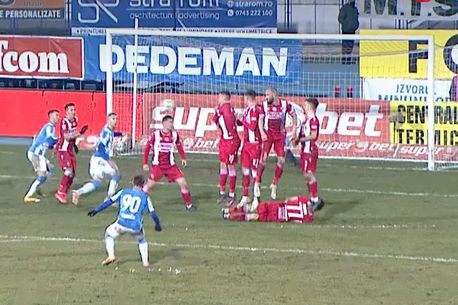 Andrei Blejdea, aflat în zid, a deviat mingea cu mâna, la o lovitură liberă executată de Calcan, dar Viorel Flueran a lăsat jocul liber, spre stupoarea jucătorilor gazdelor (Min37 – VIDEO AICI)