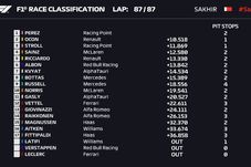 Podiumul a fost completat în cursa de duminică de Esteban Ocon (Renault) și de Lance Stroll (Racing Point). Dacă Perez a obținut primul succes în Formula 1, Ocon prinde în premieră podiumul.