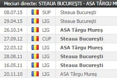 Ultima victorie a Stelei în fața oaspeților de astăzi datează din 2012 atunci când ASA se numea FCM Târgu-Mureș. Martinovic și Geraldo Alves marcau atunci pentru steliști.