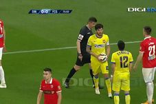 Tănase a luat mingea să bată el, dar Stanciu a venit la el să îl roage să i-o cedeze. Ușor ititat de insistența colegului său mai tânăr, căpitanul i-a aruncat mingea