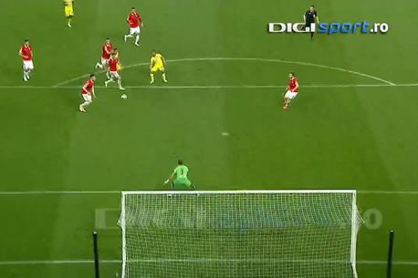 Faza de la golul doi marcat de Stanciu. Mingea are efect și, într-adevăr, dă senzația că s-ar duce pe lângă poartă
