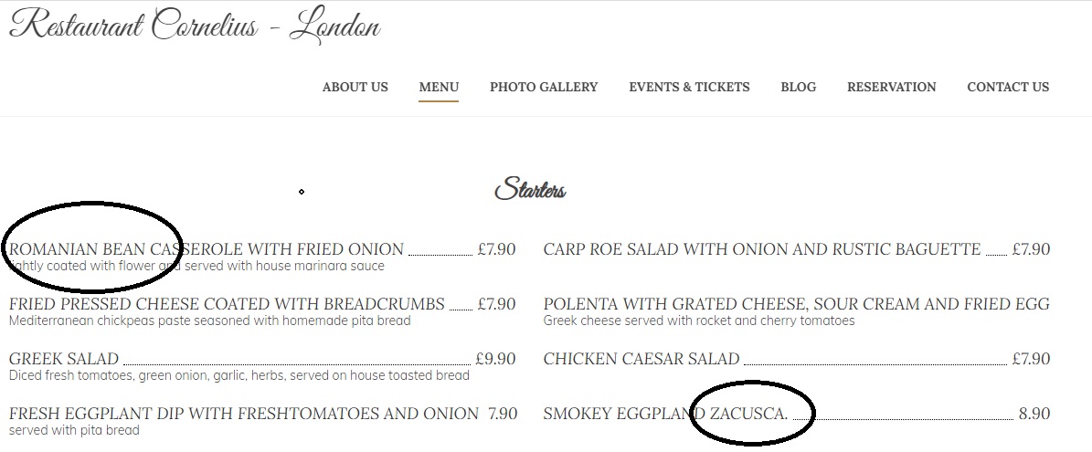Iată meniul de la restaurantul Cornelius, care cuprinde