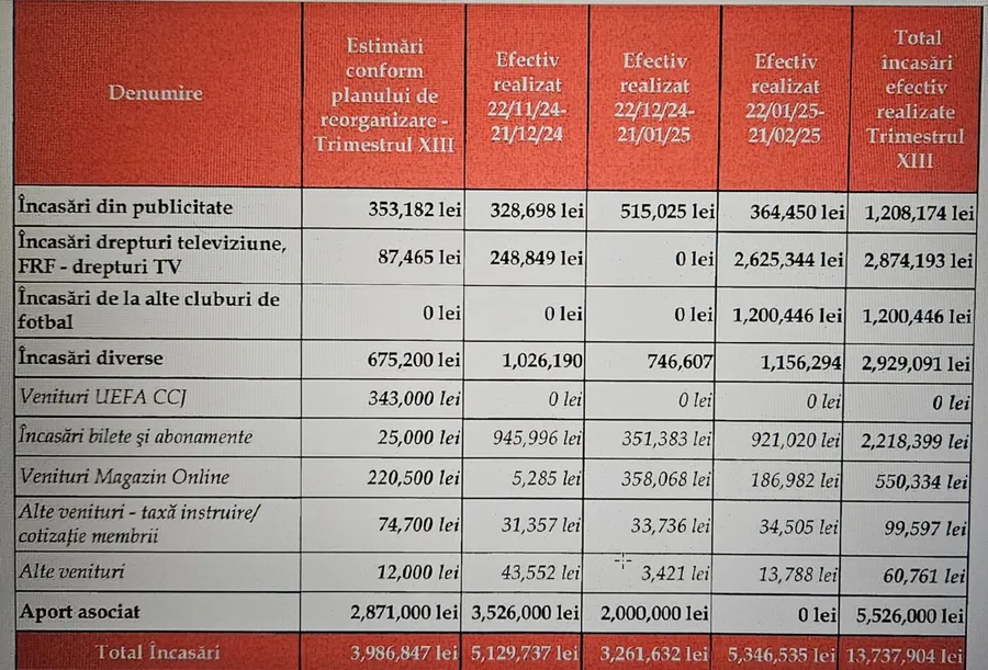 Precum în trimestrul anterior, cel desfășurat între lunile august- noiembrie 2024, RWM și-a păstrat cota de 1,1 milioane de euro virată în club, sumă care duce împrumuturile totale ale acționarului majoritar, din primăvara lui 2023 și până în prezent la – atenție!- 35,3 milioane lei, peste 7 milioane de euro, după cum urmează: