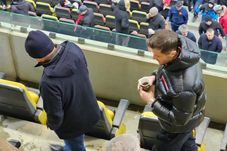 Sorin Preda, omul care a achiziționat relativ recent 28 de acțiuni în SC Dinamo 1948 S.A. de la suporterii din „Dinamo Socios”, a fost cel care a „spart gheața” și l-a abordat primul pe „Il Luce”, undeva în debutul meciului, și, în același timp, a fost și cel care a avut cel mai mare succes în acest demers, reușind să îi „fure” antrenorului cel mai mult timp pentru discuții și dând senzația că îl cunoaște deja de ceva timp pe acesta.