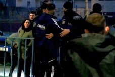 Cu greu a fost ținut de către jandarmii prezenți la fața locului. Acesta chiar a sărit și gardul despărțitor pentru a-l lua la bătaie pe fanul care l-a scos din minți.