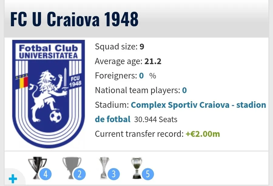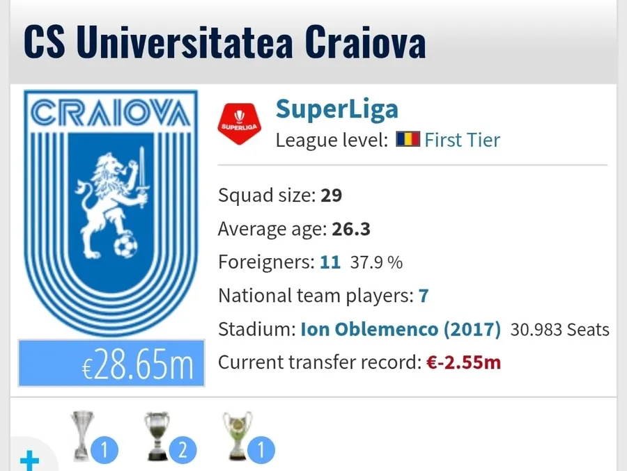Site-ul de specialitate Transfermarkt taie în carne vie! După ce a „rupt” palmaresul Stelei în trei, acum a venit rândul să ia la puricat palmaresul Universității Craiova.