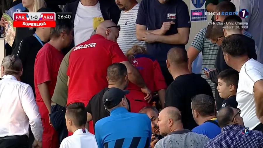 Meciul dintre Farul și FC Argeș a fost marcat de un episod neplăcut petrecut în timpul primei reprize, când jocul a fost întrerupt timp de minute bune.