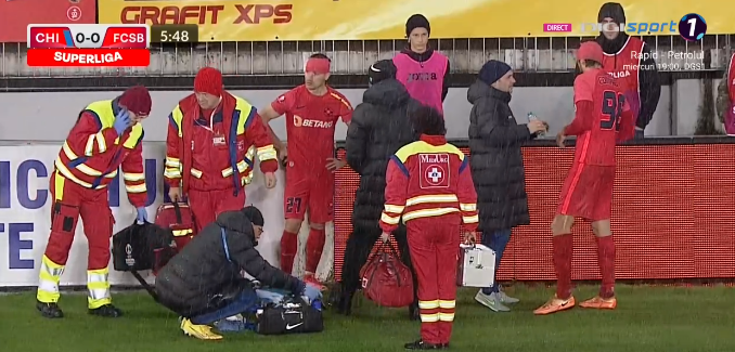 Mihai Pintilii a fost nevoit să facă două schimbări în minutul 5, înlocuindu-i pe cei doi accidentați cu David Miculescu și Răzvan Oaidă. Tehnicianul celor de la FCSB a oferit un moment mai puțin normal, când înaintea schimbărilor a fost surprins de camerele de filmat cu tabela în brațe.