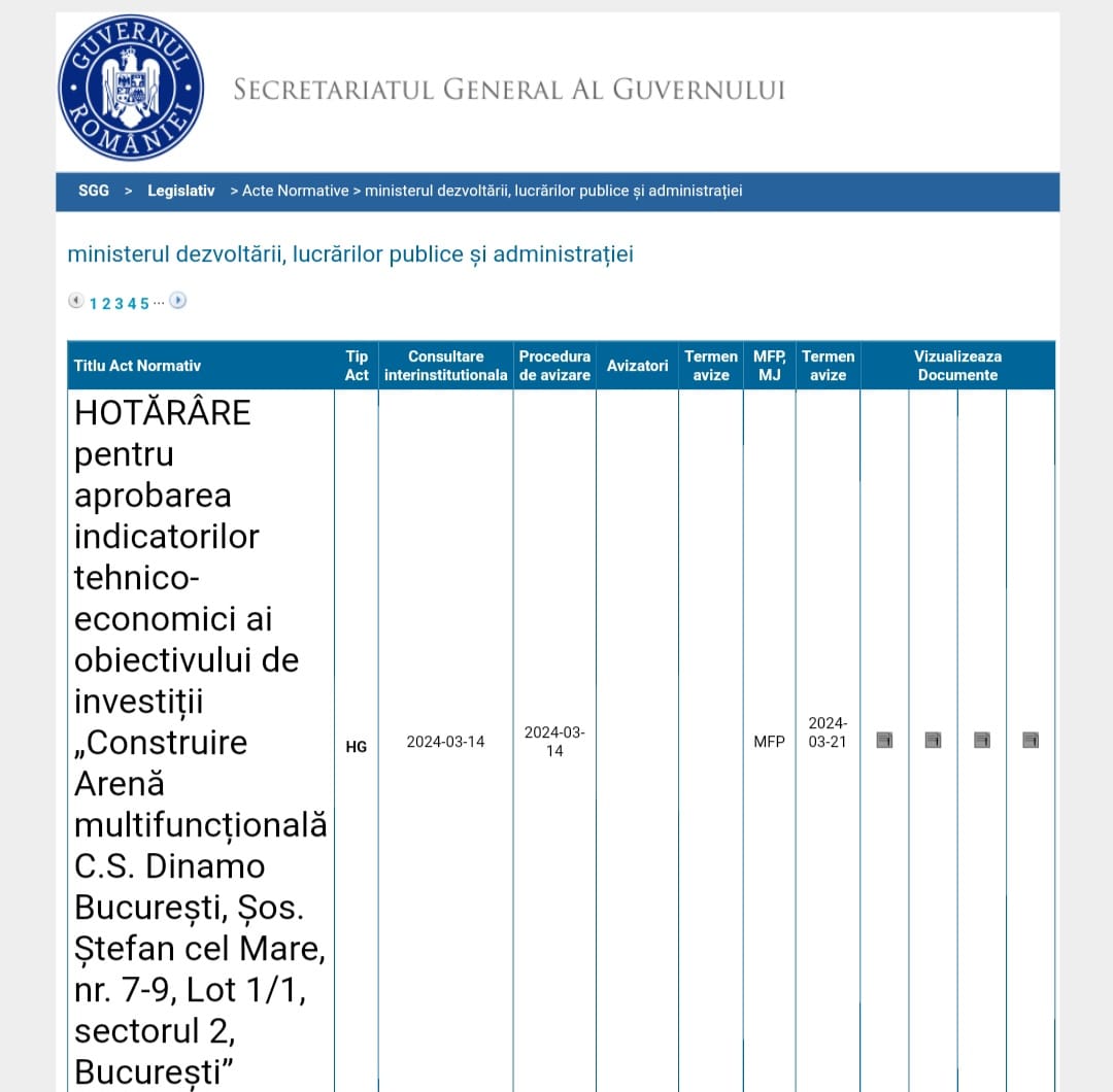 Arena Multifuncțională Dinamo, cale liberă spre Hotărârea de Guvern. Au fost luate toate semnăturile pentru aprobarea investiției de către premierul Marcel Ciolacu. Actul publicat joi care anunță că urmează ședința decisivă! ProSport vă prezintă toate amănuntele! EXCLUSIV