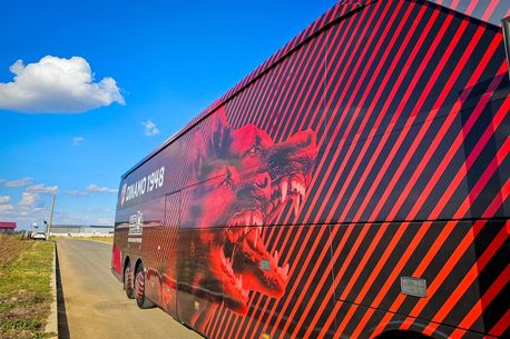Autocarul cel nou e în dungi alb-roșii pe fond negru, are desenați doi câini fioroși, numele și sigla clubului pe toate laturile, plus toate trofeele câștigate: 18 titluri, 13 Cupe ale României, 2 Supercupe și 1 Cupă a Ligii”, a fost postarea clubului din Ștefan cel Mare.