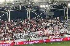 De asemenea, în tribună a fost afișat un banner cu un alt mesaj războinic: „Uniți și puternici la un nou început pentru toată viața București, Dinamo și Sud”.