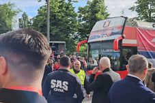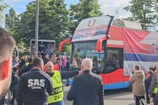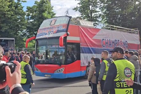 Anterior, în zonă a ajuns și autobuzul descoperit, în care jucătorii se vor plimba în București, pentru a prezenta trofeul de campioni. Pe mașină a fost scris cuvântul „Champions”, litera O fiind înlocuită cu sigla echipei.