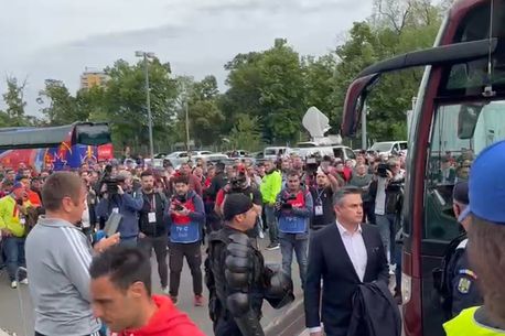 Dacă jucătorii lui Dan Petrescu au fost huiduiți, nu același lucru s-a întâmplat cu elevii lui Elias Charalambous. Suporterii care s-au adunat în zona vestiarelor și-au încurajat favoriții înaintea derby-ului de pe Arena Națională.