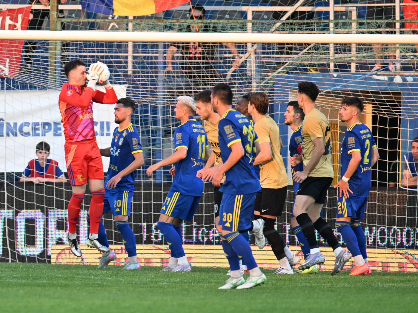 Dumiter, sigur și sec, nici n-o „miroase” Krell: 0-1. Vojtus trage pe centru, unde rămâne Chioveanu și scoate cu piciorul! Panțîru, trei cruci largi, șut mult pe lângă poartă! Arabuli, tehnic, nonșalant și 1-1, cu Chioveanu rămas iar fix pe centru. Carnat trimite tare și bine plasat, în dreapta lui Krell, însă plonjonul e de poveste și de manual în același timp! Penalty apărat, cu litere mari, nu ratat! Iar Perianu face 2-1, elegant spre vinclu.