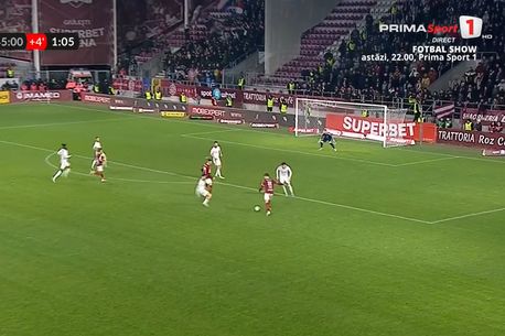Chiar înainte de pauză, Borisav Burmaz a reușit să majoreze avantajul Rapidului în meciul cu Oțelul. Sârbul a înscris printr-o execuție de finețe de la marginea careului.