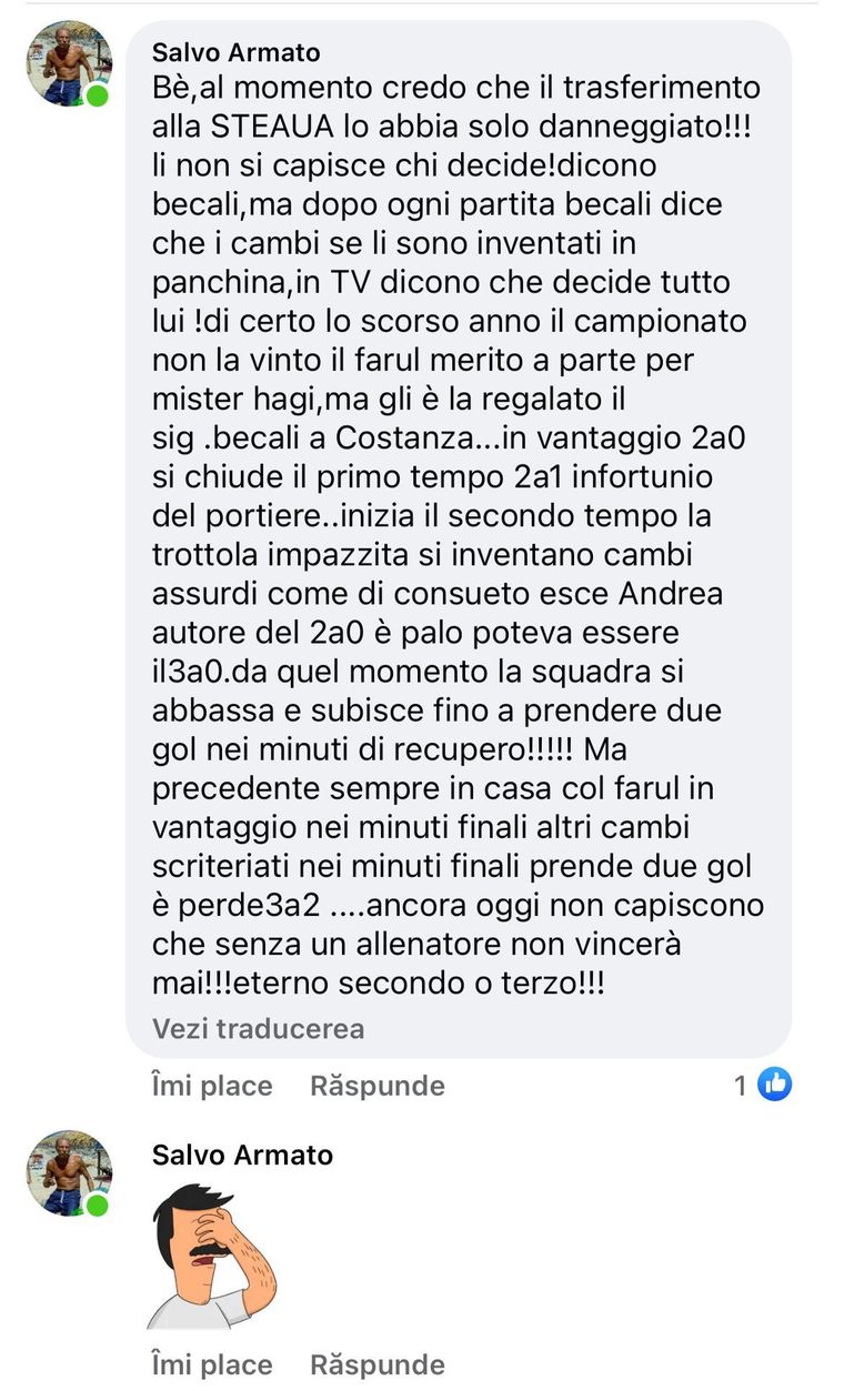 Salvo Armato, bunicul lui Andrea Compagno, l-a desființat pe Gigi Becali pe rețelele de socializare, după ultimele acțiuni ale patronului de la FCSB și, mai ales, decizia de a-l exclude tot mai des pe atacant din primul „11”.