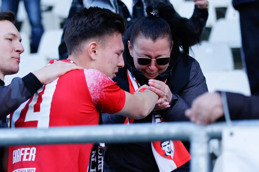 Sezonul trecut, când Dinamo se afla în degringolada și nu știa dacă se mai poate salva de la faliment, Deniz Giafer i-a impresionat pe suporterii lui Dinamo prin determinarea sa. A fost cusut pe viu, (VEZI VIDEO SUS) în vestiar, la finalul unui meci, apoi s-a descătușat în tribună, alături de mama sa, cea care i-a sărutat mâna, la finalul partidei cu Poli Timișoara, care a consemnat calificarea în play-off a „câinilor” (VEZI FOTO SUS). În trecut, tatăl lui Giafer a suferit un infarct chiar pe stadion, în timpul unei partide în care evolua băiatul său.