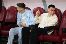 Jucătorii celor două echipe au ieșit pe teren cu câteva zeci de minute înainte de startul Derby-ului de România. De această dată, FCSB a venit pe Arena Națională din postura de echipă oaspete. Căpitanul echipei și Tavi Popescu au fost surprinși în timp ce se distrau copios pe banca de rezerve.