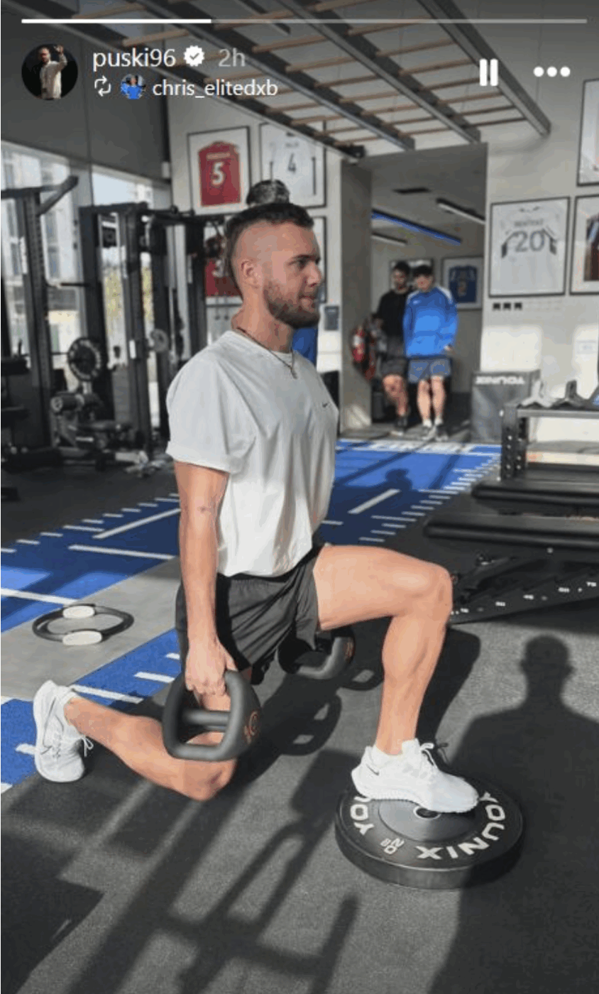 Pușcaș a publicat pe rețelele sociale o fotografie din sala de forță, realizată în timpul unei ședințe de pregătire fizică.