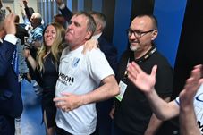 Antrenorul dobrogenilor s-a întâlnit cu partenera lui de viață la finalul celor 90 de minute intense de la malul mării și a îmbrățișat-o puternic.