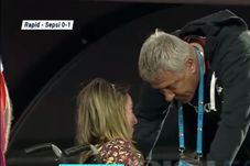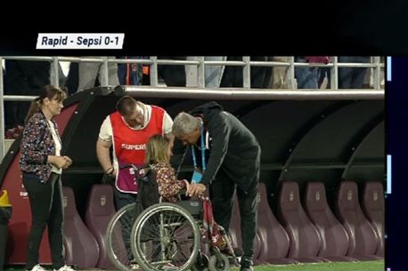 Antrenorul italian s-a oprit din drumul către vestiare și a consolat-o pe o tânără care ține cu Rapid. Aflată în scaun cu rotile, aceasta era profund afectată de noul eșec înregistrat în Giulești, însă scurtul dialog pe care l-a purtat cu Bergodi a părut că i-a smuls un zâmbet.
