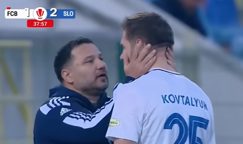 Imediat, antrenorul Marius Croitoru l-a luat în brațe, l-a strâns puternic, în încercarea de a-l calma în drumul spre vestiar, așa cum au arătat imaginile live ale partidei FC Botoșani – Unirea Slobozia, scor final 3-2.