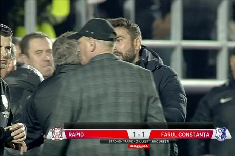 La finalul meciului jucat de Farul Constanța cu Rapid, scor 1-1, Gică Hagi a fost surprins gesticulând nervos în direcția lui Adi Mutu, cel care a mers în direcția „Regelui” pentru a-l felicita.