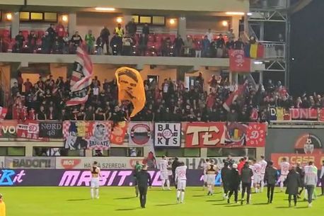 Nici fanii gazdelor nu au fost iertați de suporterii dinamoviști, după ce au cântat imnul ținutului secuiesc. Fanii dinamoviști au scandat la finalul meciului: „Afară, afară, cu ungurii din țară”.