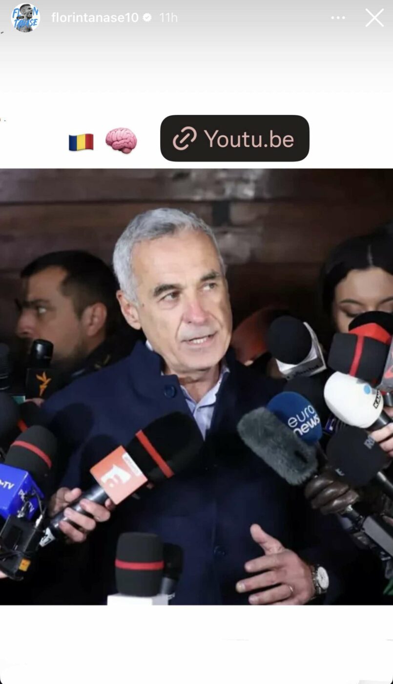 Prin intermediul unei postări pe care a realizat-o pe pagina sa de Instagram, unde este urmărit de 50.000 de persoane, Florin Tănase (29 de ani) a reacționat după ce Călin Georgescu (62) a intrat în turul 2 la alegerile prezidențiale din România.