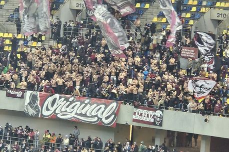 În ciuda frigului pătrunzător, ultrașii brigăzii „Original” au rămas la bustul gol și așa și-au încurajat echipa momente bune.