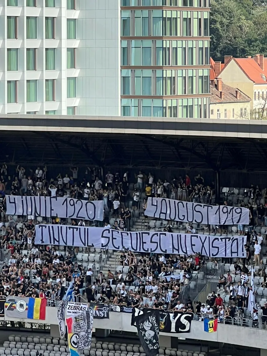 Bannerul care poate aduce sancțiuni drastice pentru U Cluj. Sursă foto: ProSport