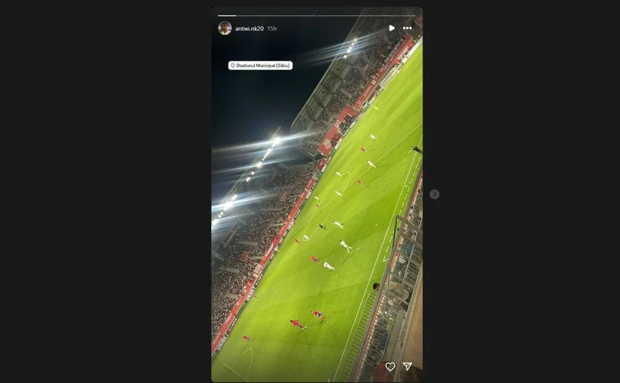 Chiar dacă a fost sărit din schemă de patron și de cei din staff, Nana Antwi nu pare să dispere și așteaptă cuminte o nouă șansă. Fundașul dreapta a făcut deplasarea la Sibiu pentru a vedea din tribune partida FC Hermannstadt – FCSB și chiar a ținut să dea un „check-in” pe Instagram, pentru ca fanii săi să vadă că este în continuare alături de echipă.