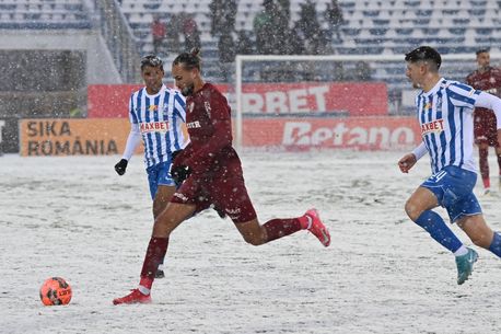 Golul avea să vină două minute mai târziu, dar în poarta Iașiului. Centrare perfectă din stânga a lui Camora, iar Korenica a reluat simplu, cu capul, dintre stoperii gazdelor. 0-1, iar terenul devenea tot mai greu, pe o ninsoare desprinsă parcă din povești.