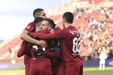 Fotbaliștii ceferiști se bucură dupa un gol marcat în meciul de fotbal dintre FC CFR 1907 Cluj si SC Oțelul Galați, contând pentru Superliga Superbet, desfășurat pe Stadionul Dr.Constantin Rădulescu din Cluj-Napoca, duminică 22 decembrie 2024. © FOTO: Flaviu BUBOI/SPORT PICTURES