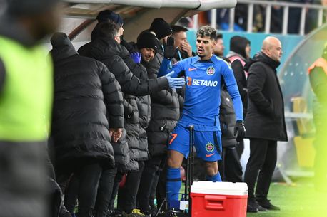 Florinel Teodor Coman este felicitat de banca stelista la iesirea de pe teren din meciul de fotbal dintre Dinamo Bucuresti si FCSB, din cadrul Superligii Superbet, desfasurat pe Arena Nationala din Bucuresti, duminica 26 noiembrie 2023. © FOTO:Razvan Pasarica/SPORT PICTURES