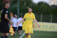 Min. 80: Straton iese sigur pe o centrare și oprește faza de atac a lui CS Mioveni