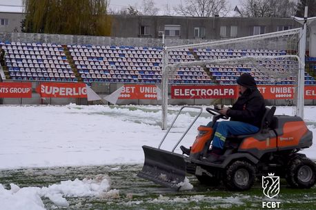 „Reprezentanții DSA împreună cu cei ai FC Botoșani intervin în aceste momente pentru îndepărtarea stratului de zăpadă așternut peste folia de protecție întinsă pe suprafața terenului încă de ieri pentru a proteja gazonul astfel încât partida FC Botoșani – FCSB să se desfășoare în cele mai bune condiții.