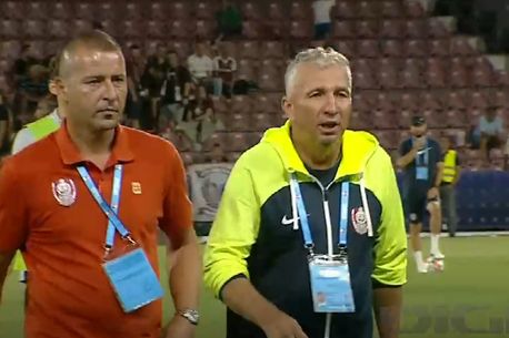 Dan Petrescu a fost un car de nervi la finalul primei reprize dintre CFR Cluj și Universitatea Craiova, când a adresat mai multe înjurături grosolane arbitrilor.