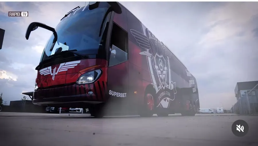 Noua «Locomotivă vișinie» a pornit la drum! De mâine, noul autocar al Rapidului îi va purta pe băieți prin toată țara și va putea fi admirat de toți rapidiștii. Primul drum: București – Craiova”, au postat oficialii Rapidului.