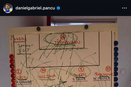 La câteva zile distanță de la victoria de pe Arena Națională, tehnicianul formației din Gruia a postat o fotografie pe rețelele sale de socializare care prezintă strategia de joc detaliată pe care le-a transmis-o elevilor săi înainte de meciul cu FCSB.