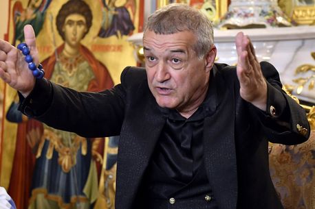 Gigi Becali, the owner of FCSB (former Steaua Bucharest), reacts during a press conference appointing the head coach, Bogdan Arges Vintila (not in the photo), held at his own Palace on 23/08/2019, BUCHAREST, ROMANIA Credit: ALEX NICODIM/IMAGO//SERRESRAPHAEL__ALX3/1908300000/Credit:ALEX NICODIM/SIPA/1908300001,Image: 467998292, License: Rights-managed, Restrictions: , Model Release: no