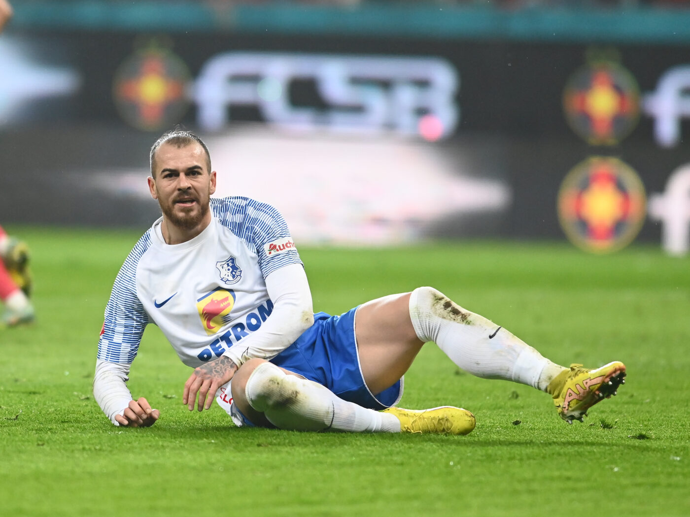 Denis Alibec la pamant in meciul de fotbal dintre FCSB si Farul Constanta, contand pentru Superliga Superbet, desfasurat pe Arena Nationala din Bucuresti, duminica 29 ianuarie 2023. © FOTO:Razvan Pasarica/SPORT PICTURES