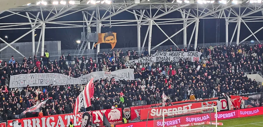 Suporterii din Sud Dinamo și-au făcut simțită prezența la meci.