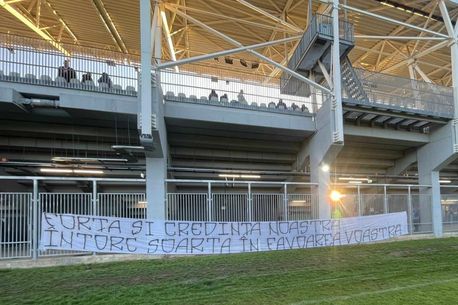 Ultrașii lui Dinamo au venit la meci, însă nu au intrat in zona care le-a fost repartizată. Fanii „câinilor” au ținut să afișeze un mesaj în spatele stadionului, mai exact în zona sectorului în care stăteau de obicei.